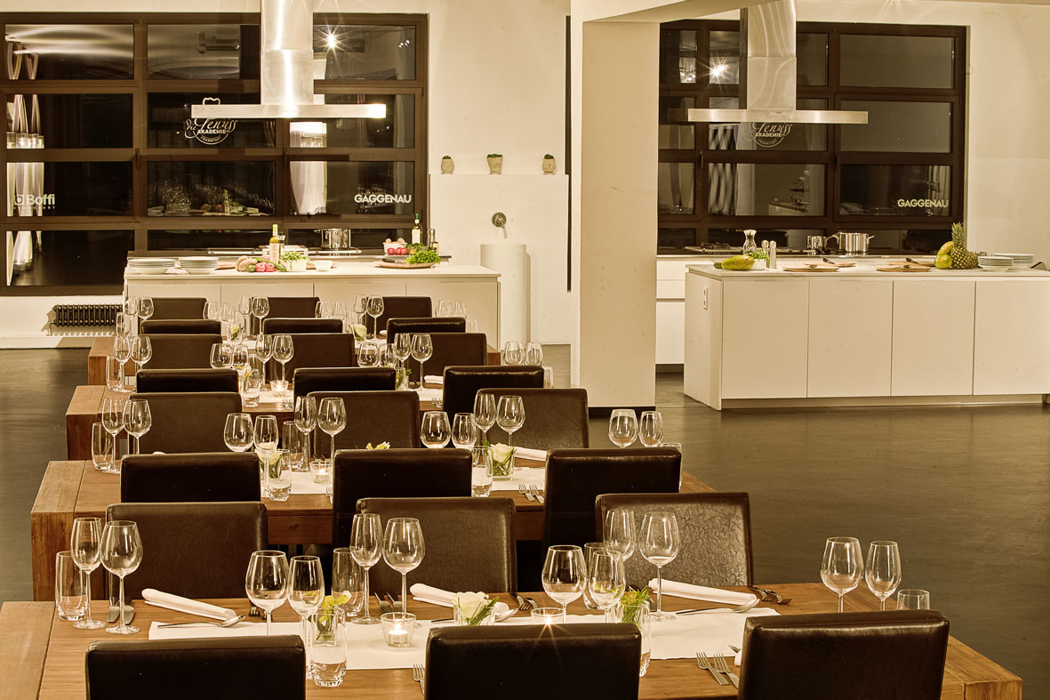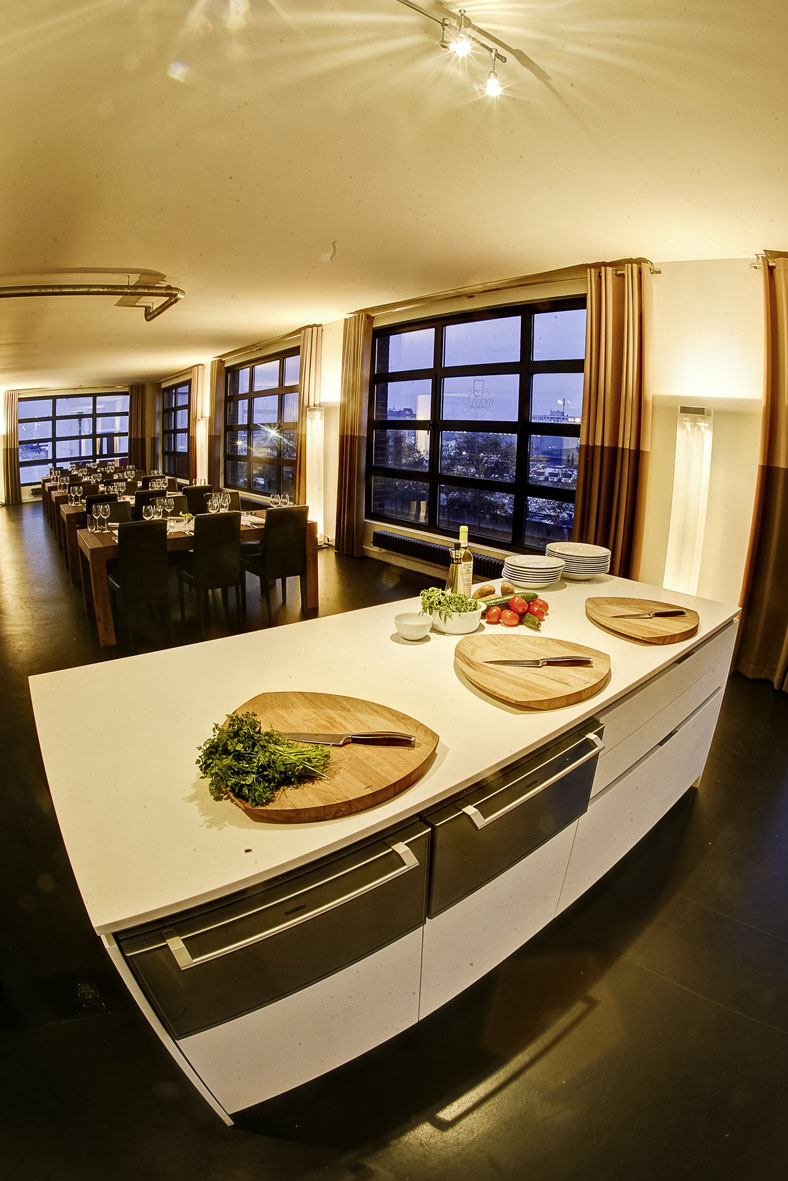 Gibt es das – ein Event, bei dem alle Spaß haben, weil jeder mitmachen kann und keiner überfordert wird, wo Teamgeist und Zusammenarbeit ganz automatisch dazu gehören, wo Essen und Trinken nicht aufgetischt, sondern zelebriert werden, wo der Genuß ganz offiziell die Hauptrolle spielen darf, wo dank guter Weine an der großen gemeinsamen Tafel auch die Stimmung stimmt und jeder ein paar Tipps und Tricks mit nach Hause nimmt, die immer wieder an einen gelungenen Abend erinnern? Das gibt es – Kochen mit den Profis als gemeinsames Erlebnis und Event in der Genussakademie Frankfurt.
